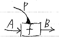 基本的な射は、名前を持つコマンドである。コマンドは、f P :: A -> B の形の宣言を持つ。fが名前、Pはパラメータ型、Aは入力型、Bは出力型である。これを次のように図示する。