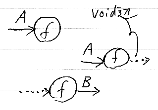 - void型がある。void型は、デカルト圏の終対象の型だが、それだけでなくて、処理系が自動void結合(後述)を行う。
