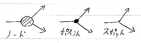 形状を持つ図形の代わりに、点(point)を使って描くノードをポイント、何も描かない(none)ときはスポットと呼ぶ。ポイントもスポットもその意味は射であるし、グラフのノードに代わりはないが、特殊なノードを示すときに使われる。
