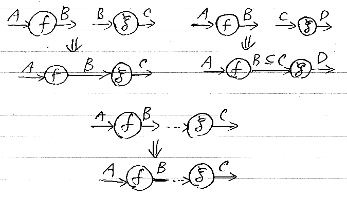 - 包含結合 -- cod(f) ⊆ dom(g) のとき結合が許される。