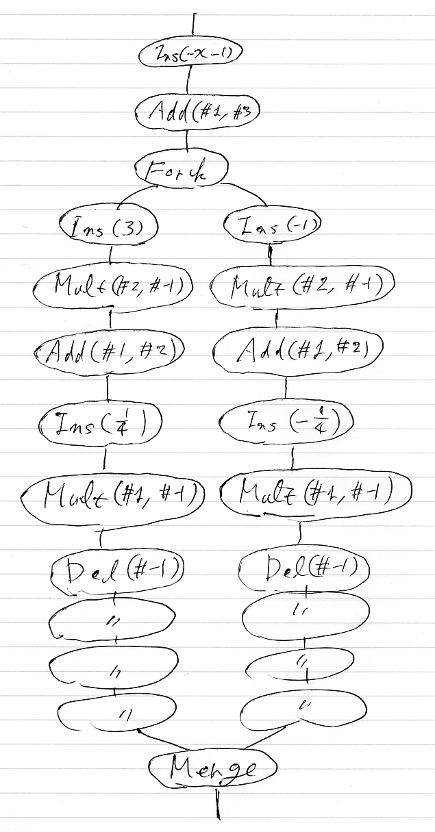 - Ins(-x - 1);Add(#1,#3);Fork;(Ins(3)
