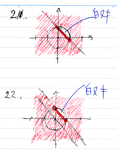 - B として31番を選ぶ: (x, y∈R| x2 + y2 = 4 ∧ x + y ≧ -1)